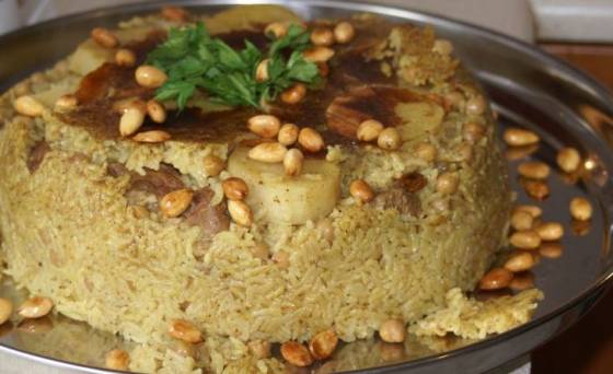 – Take deep casserole and arrange the potato slices on the bottom. Sprinkle a handful of the rice on top of the potato. Layer the lamb on top. Pour the rice on top and spread it evenly, add the boiling water.