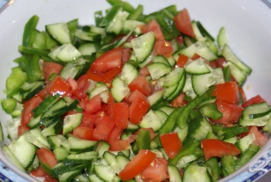 – Potrawę podawaj z sałatką z pomidorów i ogórka oraz jogurtem.